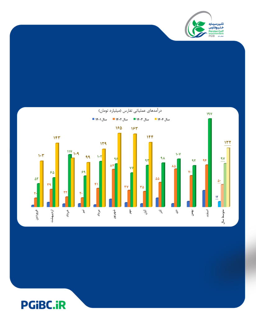گفتنی است متوسط ماهانه درآمد شرکت در سال ۱۴۰۴ به عدد ۱۳۲ میلیارد تومان رسید که این مبلغ در سال گذشته به طور میانگین ماهانه ۹۷ میلیارد تومان بوده است.