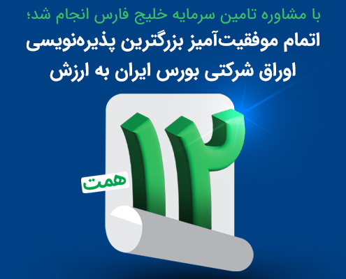 با مشاوره تامین سرمایه خلیج فارس انجام شد؛ اتمام موفقیتآمیز بزرگترین پذیرهنویسی اوراق شرکتی بورس ایران به ارزش ۱۲ همت