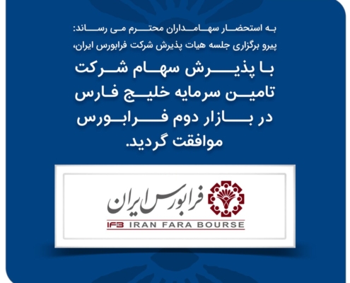 مفتخریم اعلام نماییم تامین سرمایه خلیج فارس موفق به اخذ موافقت درج پتروشیمی ارغوان گستر ایلام از هیئت پذیرش بورس اوراق بهادا…